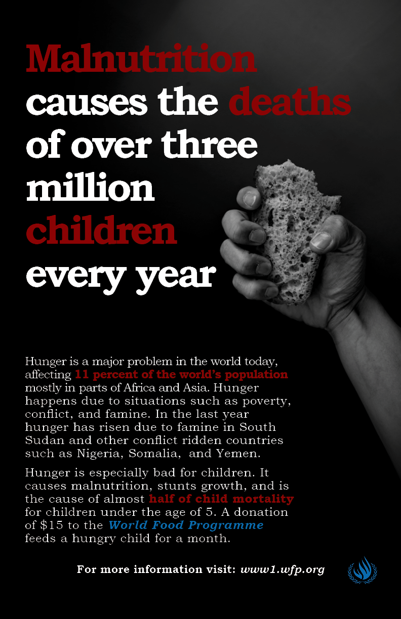 Poster calling awareness to the global issue of child hunger.